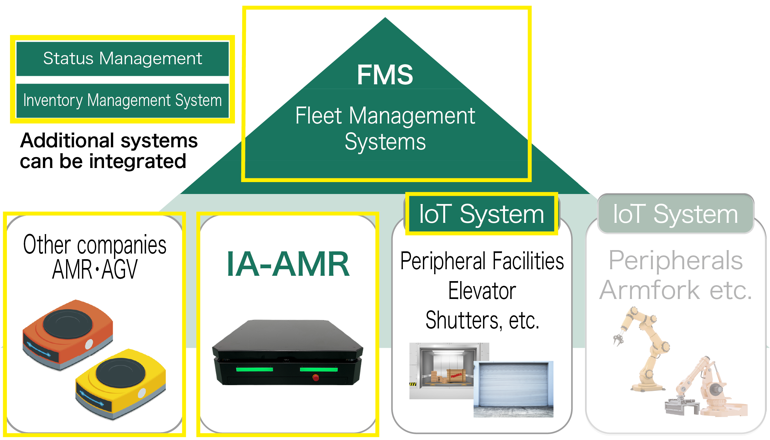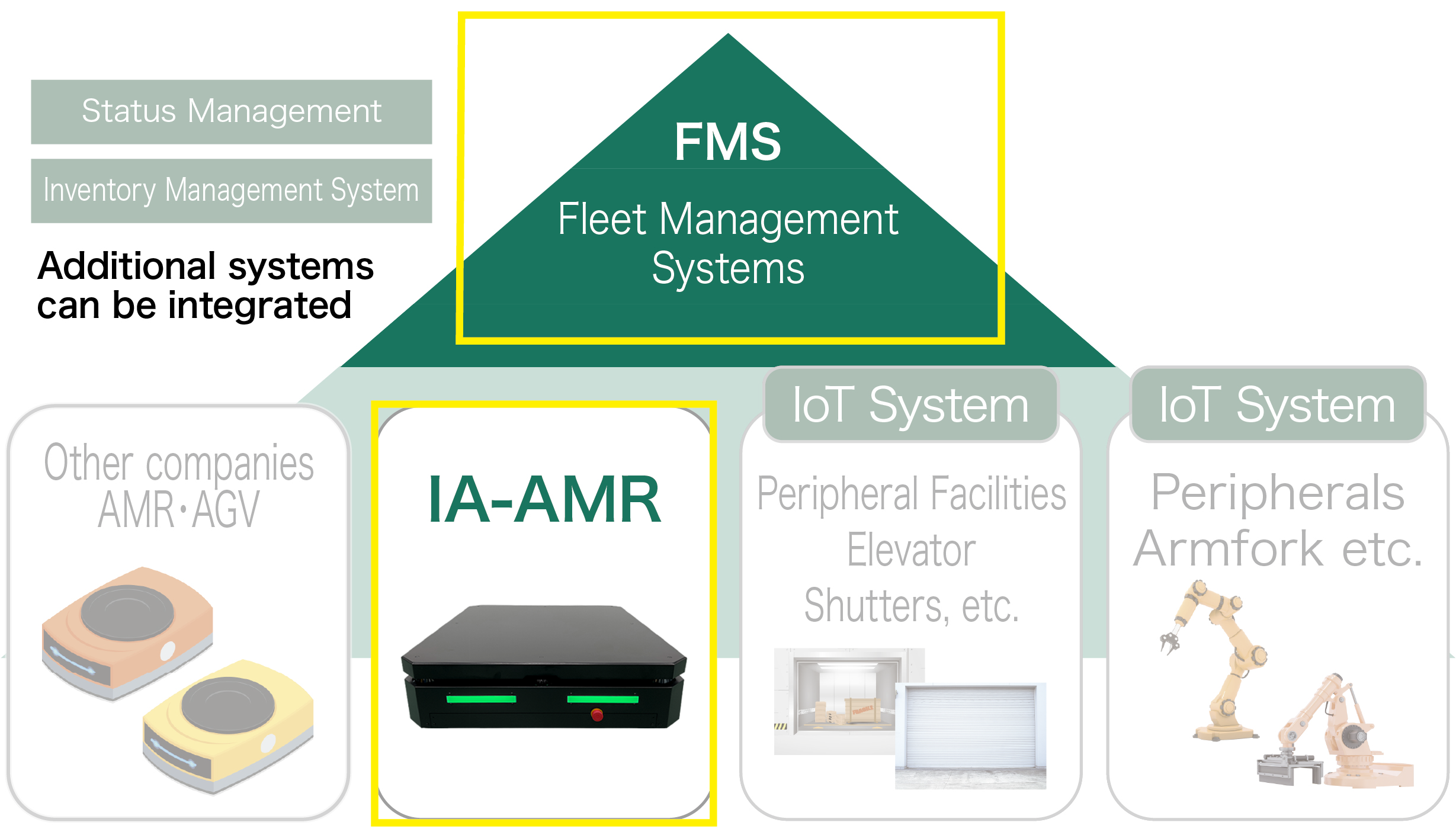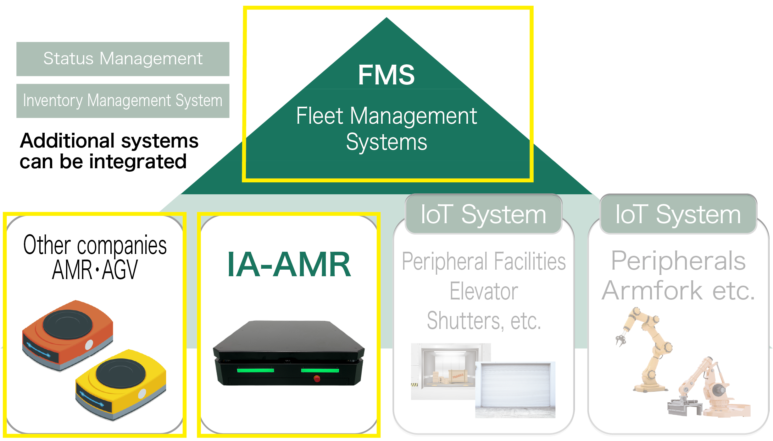 It is a management system capable of coordinating multiple AMRs/AGVs and integrating with various peripheral devices and software.